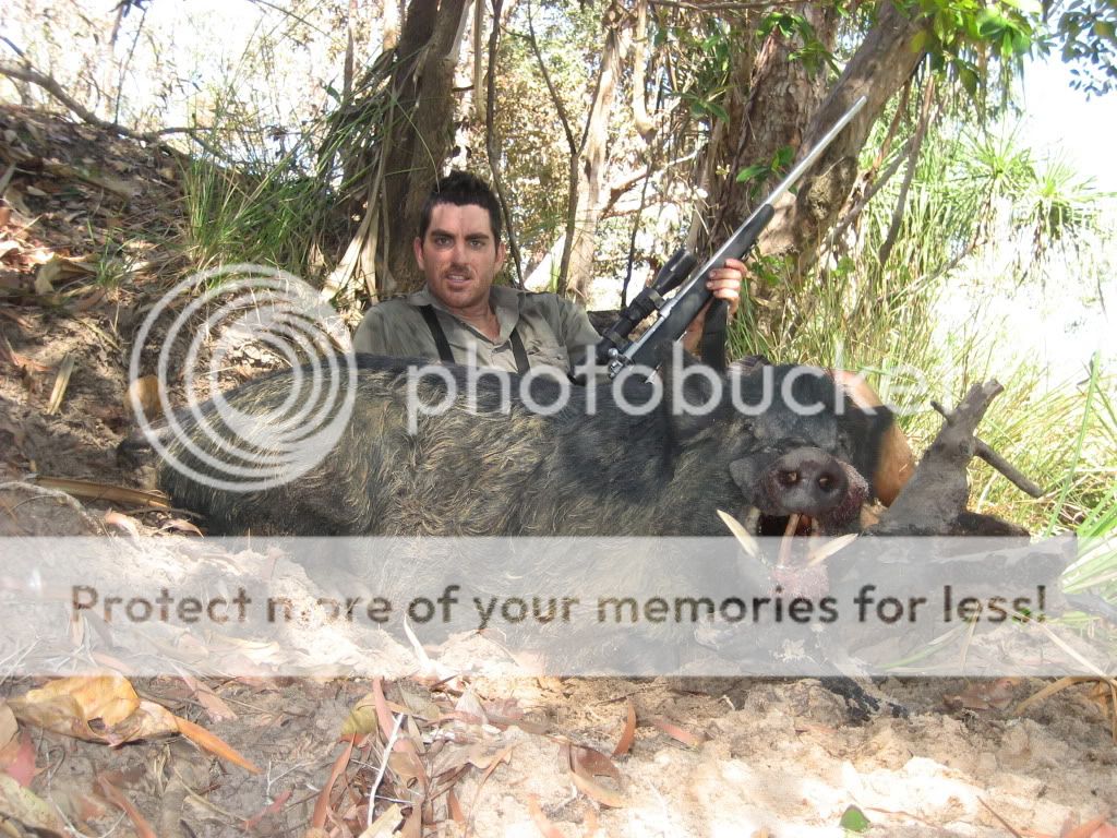 One of the better hogs I've shot, was taken whilst i was trying to find a particularly large bull buffalo we knew was in the area, i never did lay eyes on the buff, but this boar was asleep in the creek bed and i shot him at close range asleep. Good tusks and a great hunt. .300wsm again.
