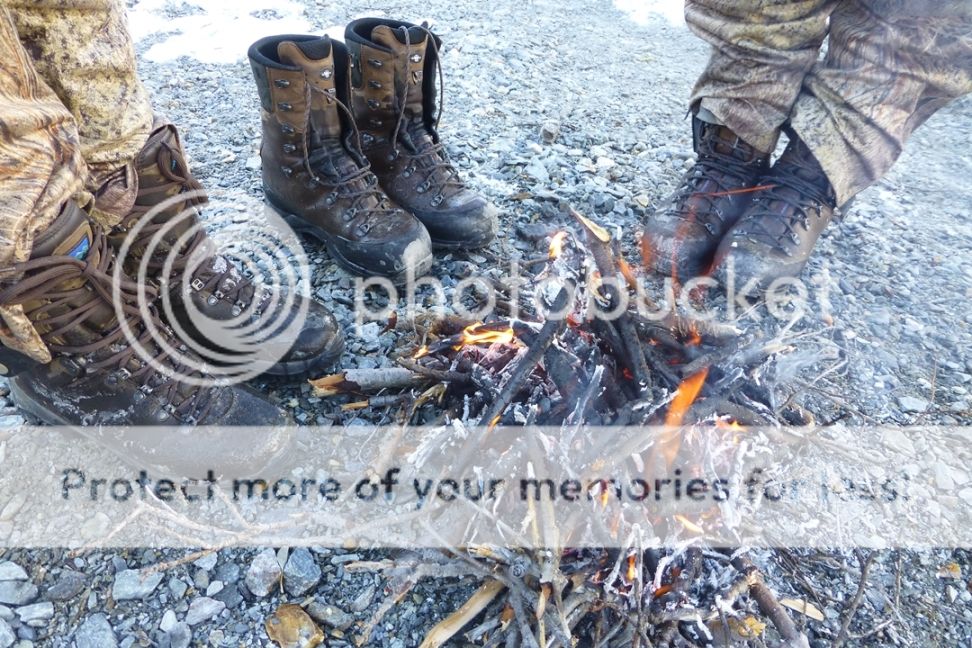 What is hunting in winter conditions within having to deal with frozen boots? After a week of daily stream crossings our boots eventually got wet. It just so happens the day they got wet was followed by our coldest night of the trip. Cramming your feet into frozen boots isn't the most enjoyable aspect of a hunt. We scrounged enough firewood to melt the ice off our boots.