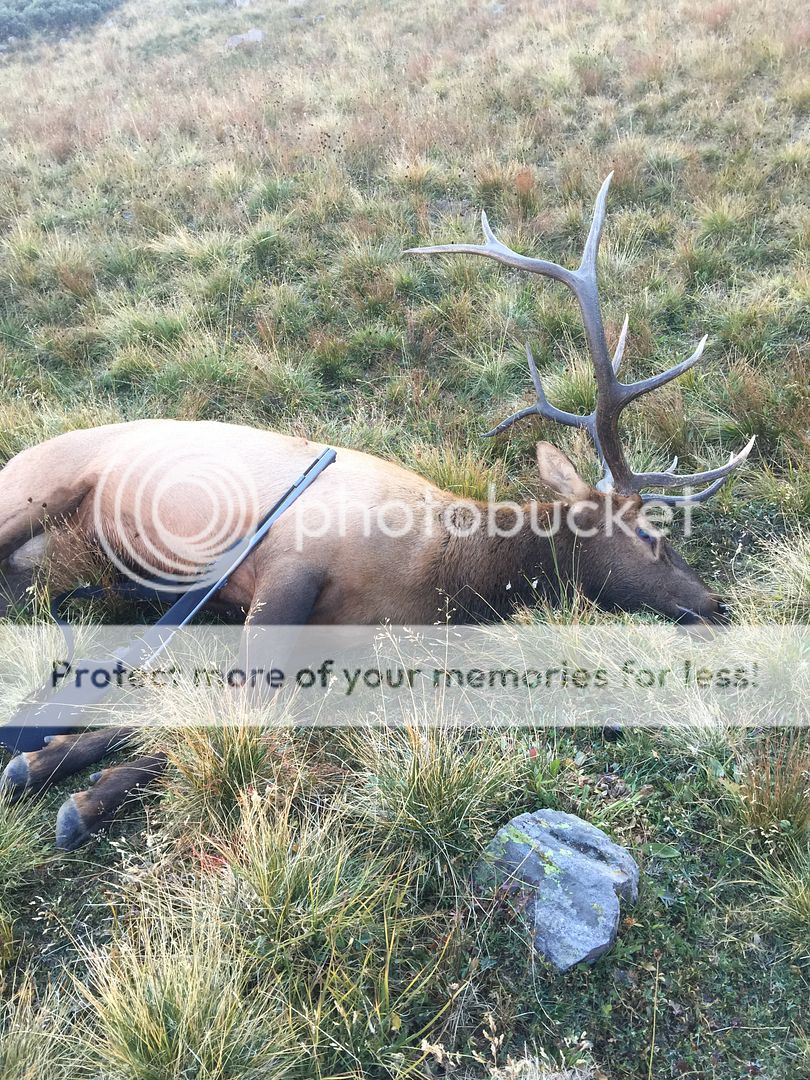 1-1/2 hrs before daylight I moved to the intercept point with a strong favorable wind and at 7:00 right on queue #2 bull followed his girls past at 70 yards, posing for a postcard ending and tempting past my limits (it helped my decision seeing another hunter 100 yards farther down the trail who was going to whack him if I passed!)