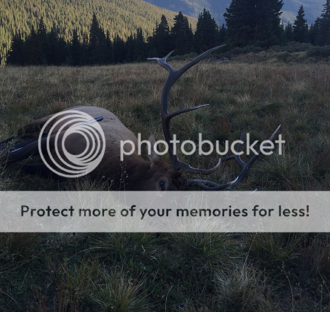 He had but a single brow (which I knew from scoping him earlier) but not a bad bull. I got 340# of boneless bull off of him, all peppered up and stored in the nearest trees awaiting some llamas to be returned, and had to press my faithful lab into assisting as well as my own fat ass. Princess thought this was funny as I feed 19 llamas and yet had to pack meat on my own back, the word stupid was used more than once as I recall...