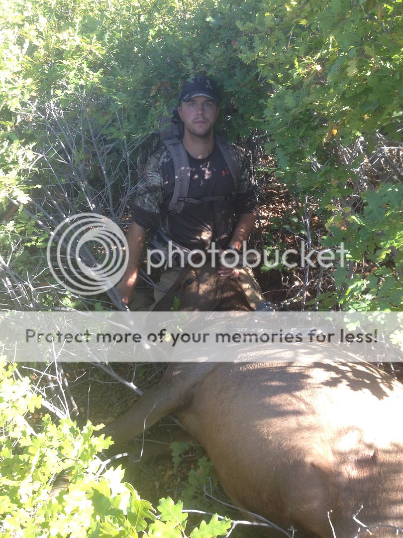 Well I heard my first bugle on Friday at 11 am, called him in perfectly to 20 yards but didn't take into account the dead branch in the way. Heard three others bugling over the next day or so. Ended up, however, taking this cow Saturday afternoon while she was taking a sapling to task. Pretty stoked as it was my first elk hunt. Ended up hiking over 50 miles over the course of 7 days. Probably should have just sat down and watched/waited more but sitting still drives me crazy.