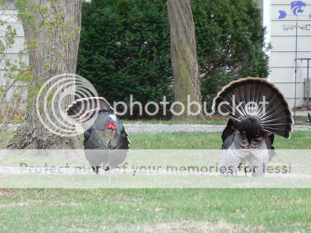I have a field across the street from my house where turkeys congregate in NE KS, and Saturday saw the coolest thing. Two toms were chested up and locked at the beak at 100 yards, pushing each other around for an hour. Since then been a lot of struttin. Gonna try archery this year, get a week head start.