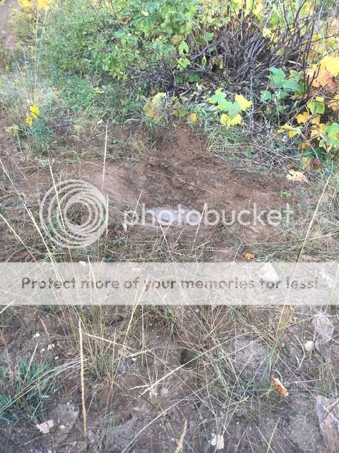 On the way back up once again we are above the creek and we located a fresh "wallow" or maybe you would call it a scrape. It's apparently what rutting bull moose do anyhow...