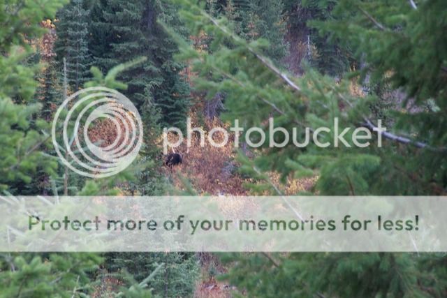 The trip in started out warm but by the time we got up there the temp had dropped 20+ degrees and we could see snow above us and heavy fog patches blowing thru. We glassed a while then it started to rain so we decided to head back to camp but on the way down I threw the binocs up one last time to glass a hill about 625 yards away and saw a moose move thru the trees! We got the spotting scope out and confirmed it was a cow and looked all around for a bull in between banks of fog that were rolling thru but couldn't see one. Finally we headed down into the creek bottom below her and set up numerous times to call with no luck. We finally decided she must be alone and started up the creek to head out. About 200 yards up the hill I looked down and see this guy looking up at us....