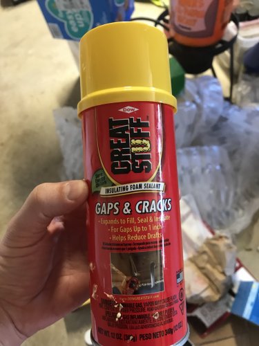 This time I am using 10 layers of foam floor mat you can get at Home Depot as a core with a few layers of landscaping cloth sandwiched between for a core, and then the Great Stuff fire block foam as it is more dense than the gaps and cracks foam.