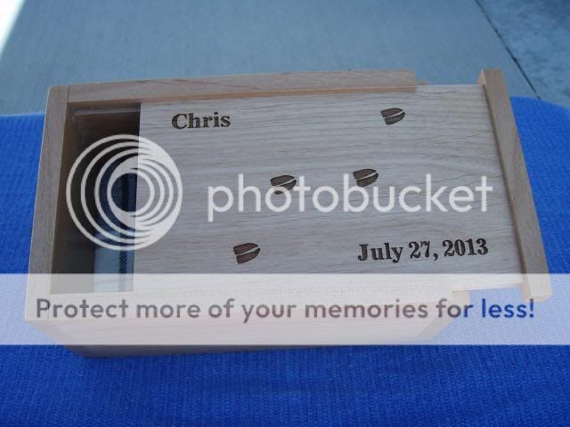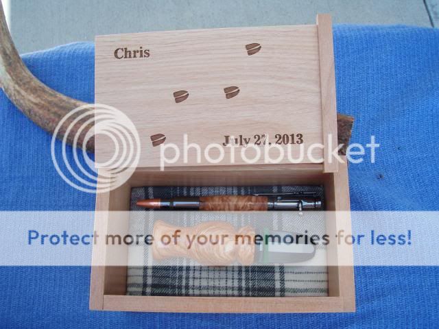 The Cherry Wood boxes were made in NW Montana and a friend did the engraving. I made one for the father of the bride also, picked out the best piece for him. He deserves it, any of you with daughters will understand.