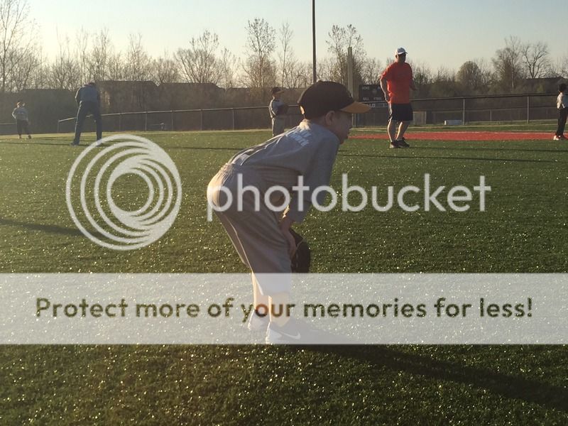 He learning to like to catch. Since this is still 'coach pitch' he doesn't have a catcher's mitt yet, but that will be remedied shortly.
