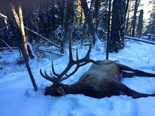 And my step dad, this bull a few days prior, by using the same tactics I mentioned above. Of course, knowing elk were in there and having quiet fresh snow helped greatly.