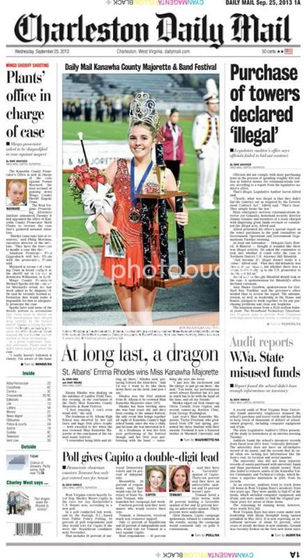 I see some really good grandkid and parent bragging going on around here and I never want to miss a chance to brag on mine. Last night was the 67th Annual Daily Mail Band and Majorette Festival, it's always a big deal to the local high schools. My daughter has been going to watch the festival since she was 4 and couldn't wait to compete in it. This year she made feature twirler as a Freshman (she's 14) and got her chance to compete. We didn't have high expectations going in for a win as a freshman since that has never happened but she did not disappoint. She preformed great and looked the part taking the Daily Mail Kanwaha Valley Miss Majorette title.