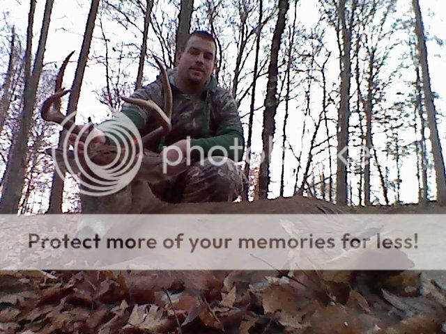 The river was frozen, but not that frozen. There was no way I was going down there. And it was about a 10-12' drop straight down to the river anyway. I tried calling a buddy to help me get him out, but he was out of town. So I got a rope and a come-along. I got the rope around an antler, chained the come-along to a tree, and hoisted him out of there. Of course, his antlers quickly dug right into the bank, so it was a tedious process of lifting him a few inches with the come-along, then running back and getting him turned right so he wouldn't get caught in the bank. Took a couple of hours to move him twelve feet...
