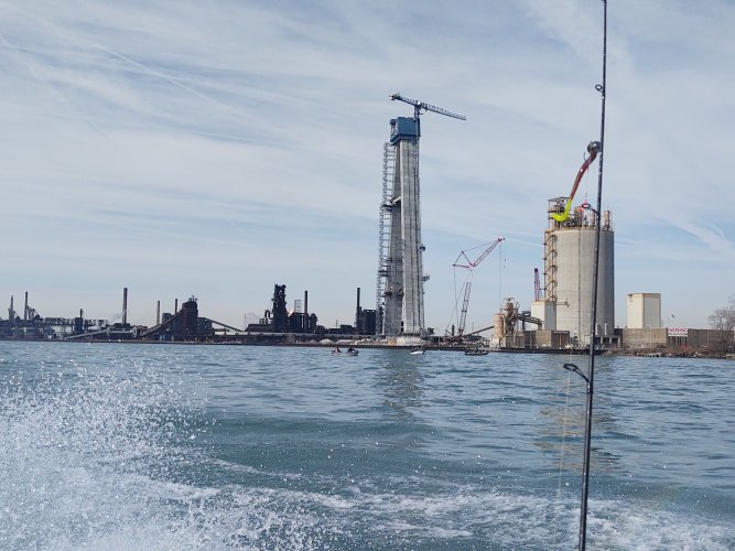Lots of freighter traffic today, and caught 3/4's of our fish underneath the towers for the new Gordie Howe bridge.