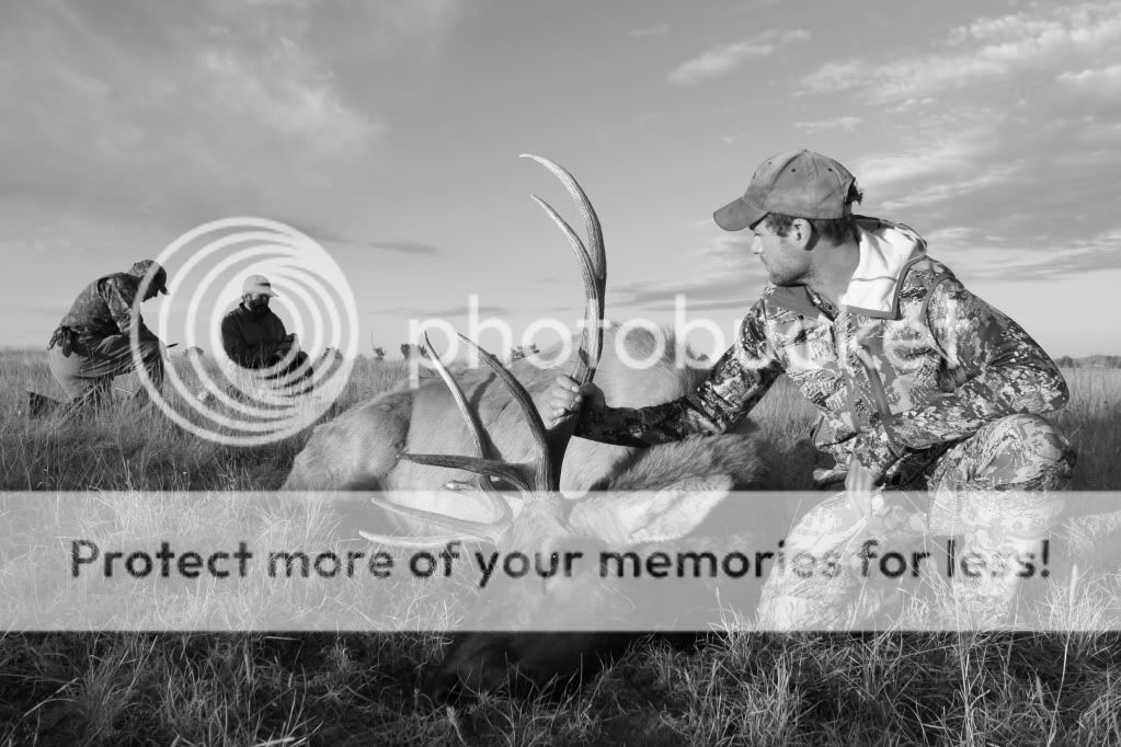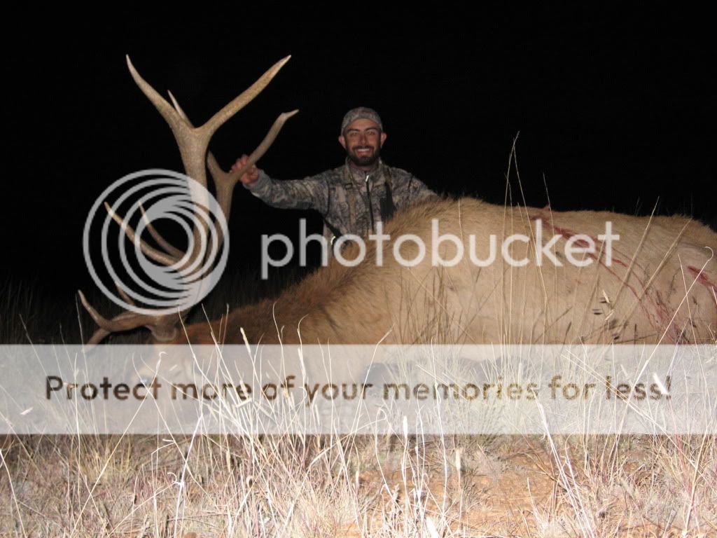 2010 bull from Kentucky. DIY WMA hunt, my first elk hunt. Bull was 9.5 yrs old. Stalked him and his single cow about 1 mile. Me and Jeff crawled to within 40 yds before we could see him. After the first shot through the shoulders he turned and tried to follow the cow down a steep bluff. I shot one of his eye guards off while trying to anchor him with a Texas heart shot. The third shot through his neck and the base of his skull stopped him. I had prepared to shoot 3-400 yds across ridges, and ended up shooting him at shotgun range.