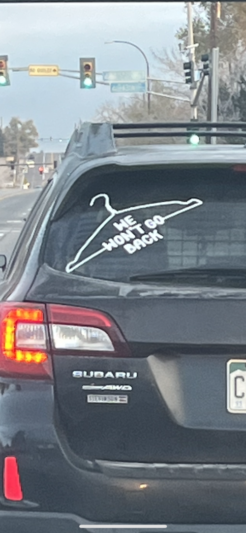 That parking lot is a chit show.This guys stupid sticker is on the front bumper. He had a rifle in the front seat so I figured I could pick him out in the store. I was surprised, only an orange cap and not a pumpkin suit, and buying a half a dozen bottles of wine. Fuggin' blue plate tool.