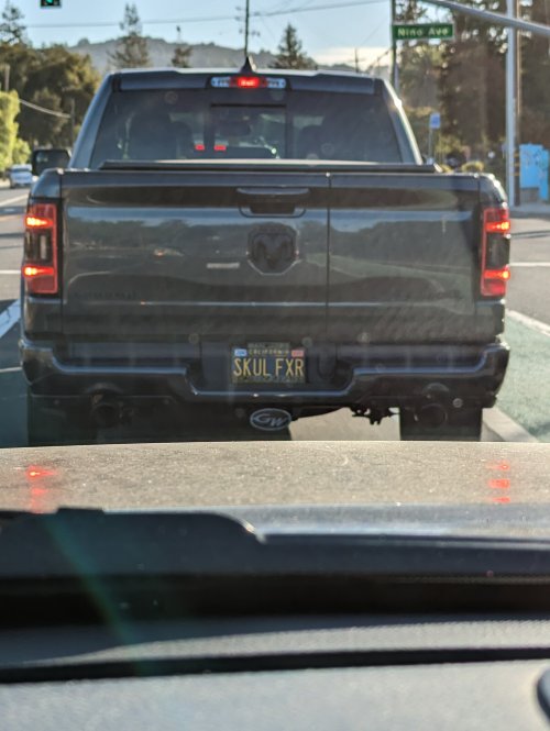 I saw a better, homemade window sticker that said, "Yes, my kids painted my car." He wasn't kidding. Looked like 3 yr-old work. But he gotta away before I could get a shot, so this will have to do.
