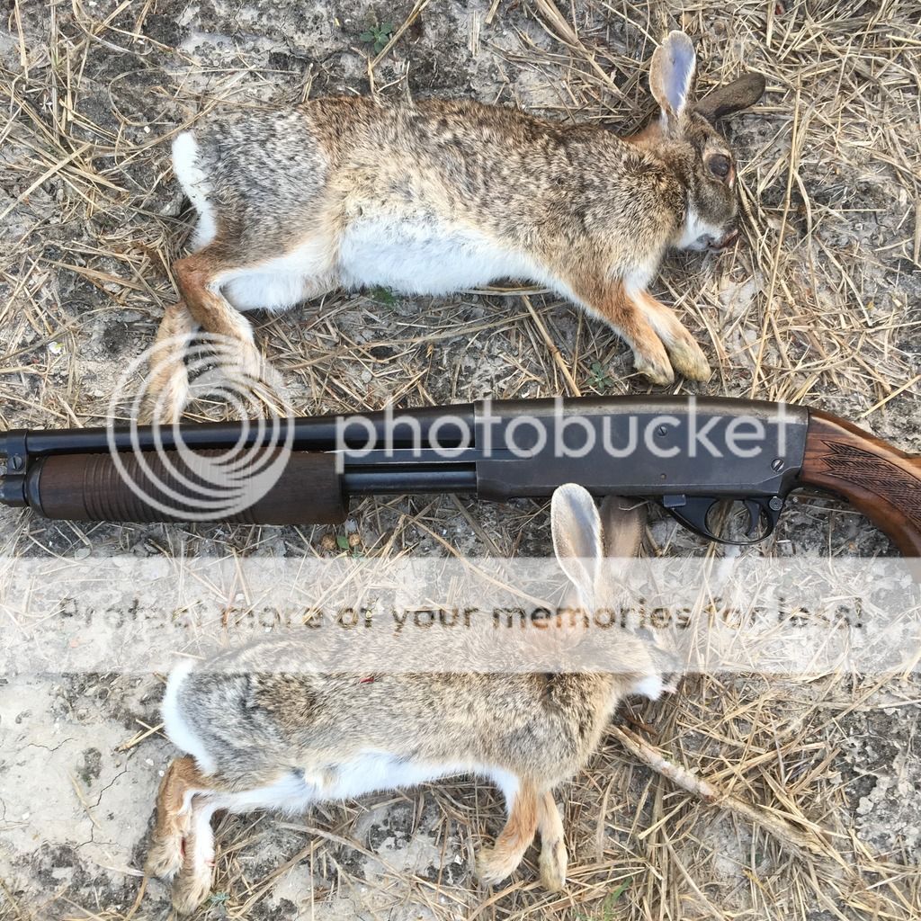 It's the last weekend for doves and quail in South Texas, which means it's also the last time rabbits can be taken on most public hunting areas. I shot this pair earlier today at the James Daughtrey WMA outside of Three Rivers, using an ancient Stevens pump in .410 that belonged to my wife's great-uncle. The rabbits will go into my next pot of jambalaya.