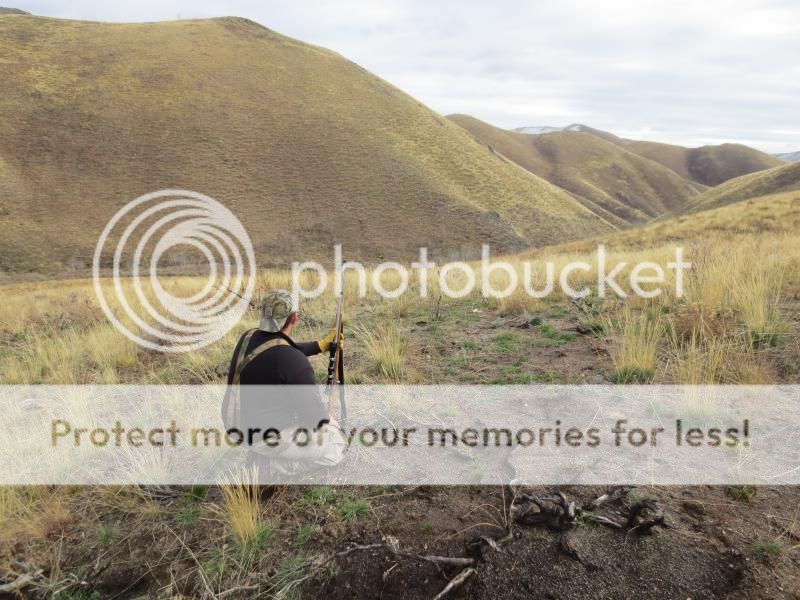 Just some pics from the 'rodeo'... The bull was bedded on the top of the left hill. We snuck up through the timber and took the first shot from the top of the middle hill. Just to the right of the tallest tree.