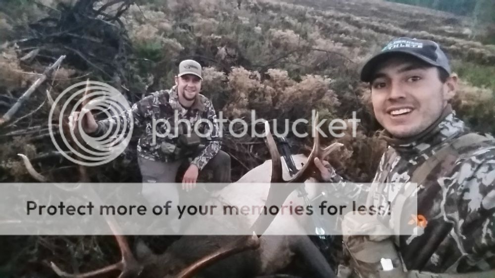 Here is the bull Trav was able to kill. Its not at big as that 5x6 he passed on but it was still an awesome hunt and a great elk. He has a 51" spread on him. He was able to sneak in and shoot him at 10 yards frontal, then the bull ran out and stopped at 30 and Trav was able to pin wheel him. The bull died within 20 seconds.