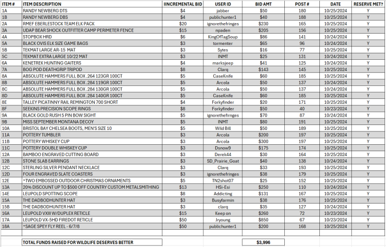 Hunt Talk Auction! **$4,705** Raised By Hunt Talk Members For "Wildlife Deserve Better!"
