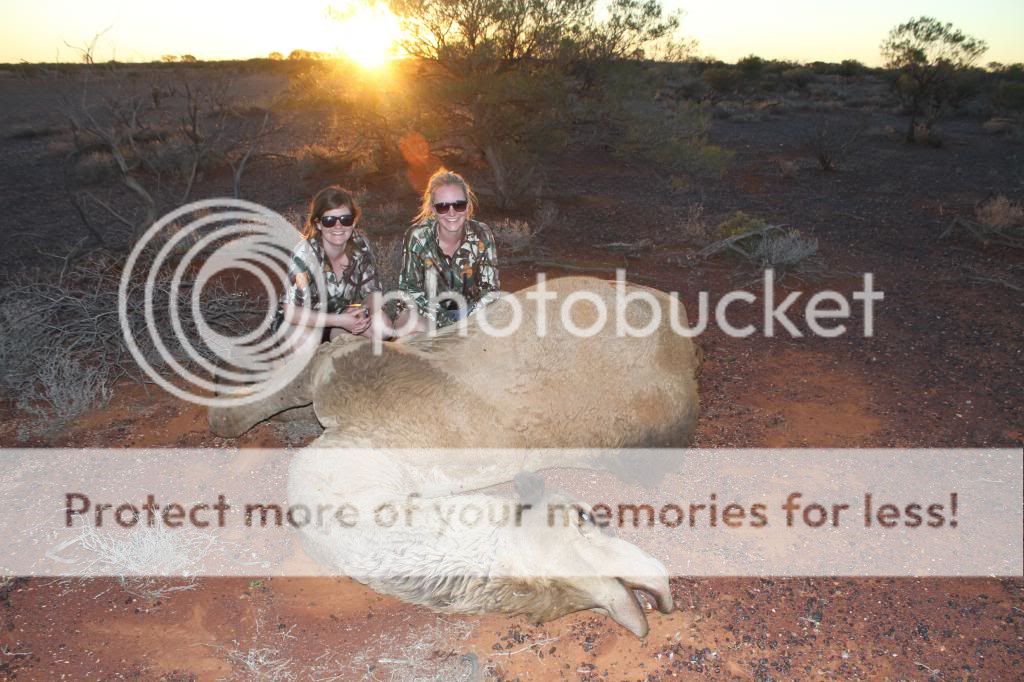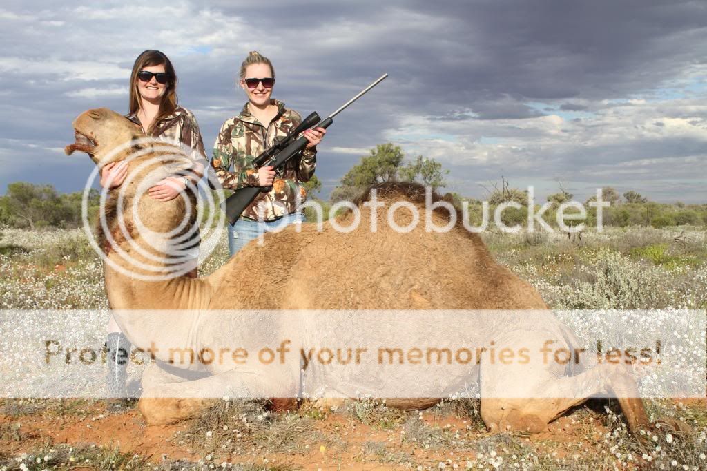 We nearly hit the 200km mark for the day when eventually a bull camel was located in a small clearing. I wasted no time and took a front on neck shot with a spare rifle of my mates. The little .25wsm spitting out a V-Max dropped the bull on the spot, and as we walked up to the huge beast i put a finisher in the armpit. He was done and we all stood there in awe at the size and the features of this outback dweller. The girls didn't hesitate to get in for some pictures and we all were happy to have finally come across a camel.