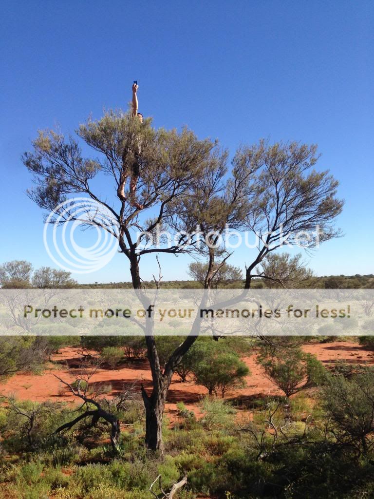 In the morning, one of the phone picked up a signal, and the girls thought it best they send a message out to let family know they were ok and we hadn't hit 'Wolf Creek' as yet. But the signal was weak, so my mate climbed a tree to get a bit of extra height and that did the trick.