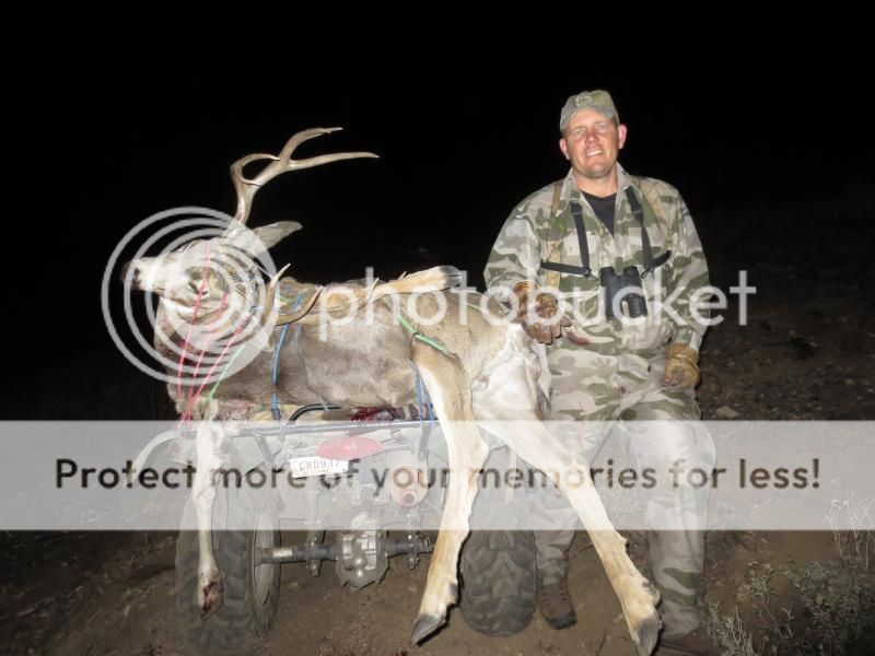 Funny that you mentioned the double throat patch and cape. BOY thinks I'm a bit 'off' being a bit obsessed with getting another like that. We did see at least two good sized bucks with doubles. One, which we had spotted the first day, was shot by a youngster from WA as we were looking elsewhere. The other was a good 4pt about like this one. In fact we thought this was that buck. It wasn't until we got to him did either of us realize this wasn't the one we thought it was. So, no I didn't save this cape as now it'll be a double patch or nothing! :eek: Unless I kill one I want to mount without the double.