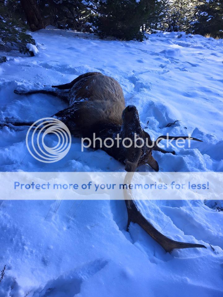 Over the next day we spotted many elk and even had 2 more herds cross the road in front of us, as we covered ground in the unit. The bulls were just 5x5's, rag horns and spikes. I think the big bulls were bachelor'd up and higher fighting the snow to avoid the pressure.