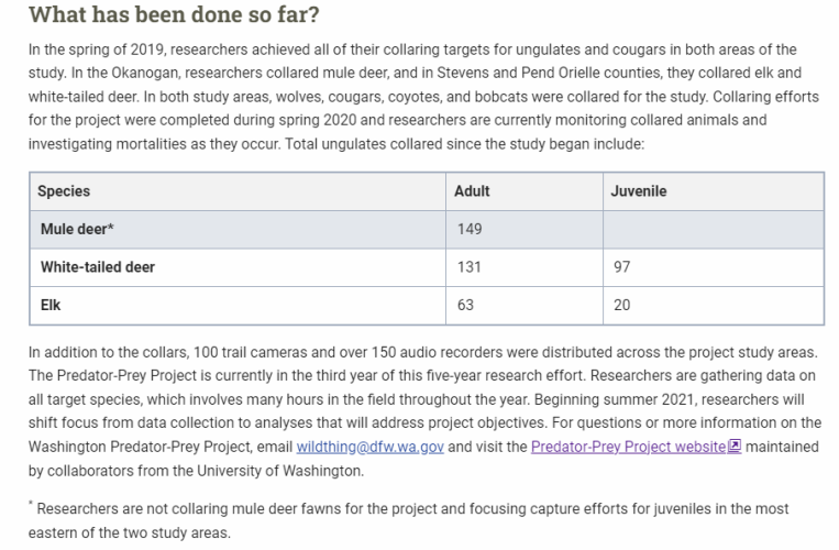 I couldn't find a link, but have previously read they tried to have most adult wolves collared, and I think they shoot for 5-15 added cougar collars per year.