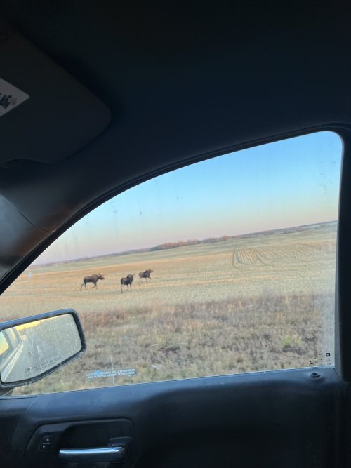 Saw this little guy a couple times while elk hunting in WY. Saw more moose than elk. Took this picture as he had his nose to the ground looking for his floozy girlfriend that took off with another bull, or so we surmised. Practically walked a circle around our truck while we were at our cel service spot.Wyoming moose.jpg