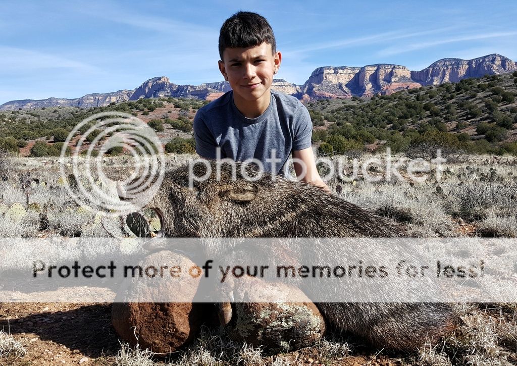 My 12 year old nephew got his first javelina on the last day of the youth hunt. We shot a pig with my son on opening day, didn't see another one until this morning. 200yds with the R-15, done deal.