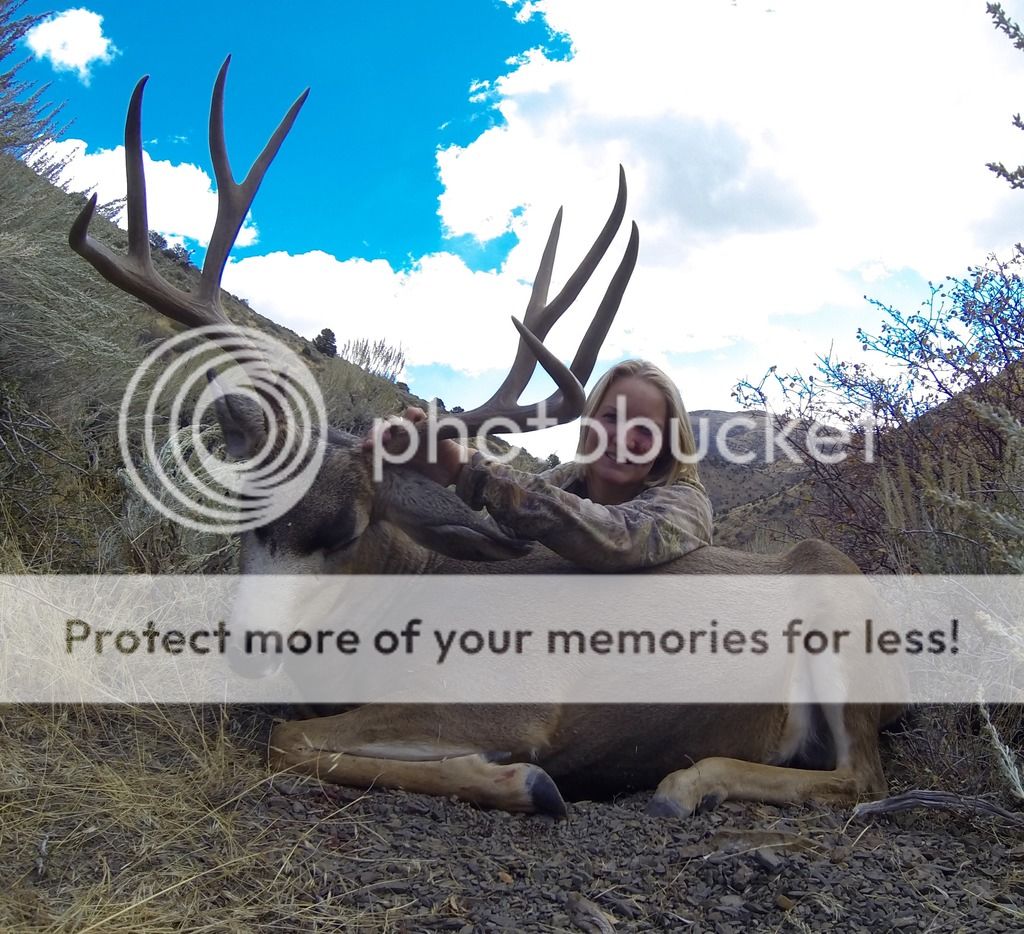 My wife and I applied in NV again and not wanting to wait on trophy units and just wanting to hunt somewhere new and have fun. I narrowed it down to 5 units that had good draw odds and areas that offered some steep remote terrain to limit people . We drew our 3 rd choice and the hardest to draw of the 5 . 4 to 1 odds. We loaded up and got down there 4 days before it opened and my wife glassed up a group of bucks 3 days before it opened with one nice 4 and she wanted it. Went back in 1 more time and couldbt turn him up. Opening am we started hiking 1 1/2 hrs before light to get to out vantage point to hopefully glass up her buck. We got settled in and she found 3 bucks below us at 500 yards with a mature crabby 4x4 in the group . She said she would shoot him if we could get on him. I told her to watch them and see where they bed and I'll continue to glass for the other 4x4. 20 min went by and I found him in the same spot. We immediately packed up our stuff and made our way to him. We had to drop 2k ft in elevation and over 2 ridges . Finally snuck into range and he bedded at 251 yards with no shot. We sat behind a sage bush in the sun cooking for 3 hrs waiting he finally stood at 1 pm and she made a perfect shot and dropped.