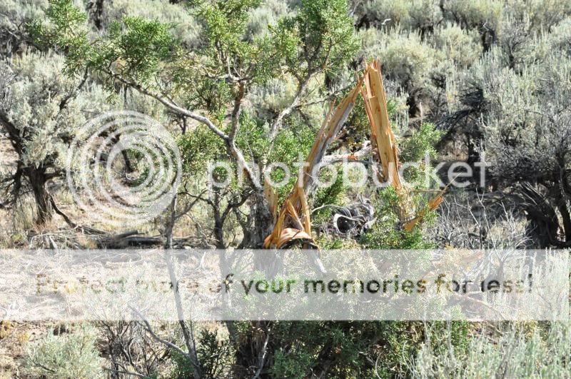 Now I do have a serious question. These next two pictures, what would have done that to this poor tree. It looks somewhat fresh, at least to me, but I would think it is to early for deer or elk to be thrashing a tree like this. Your thoughts?
