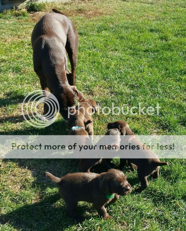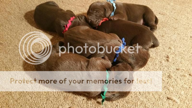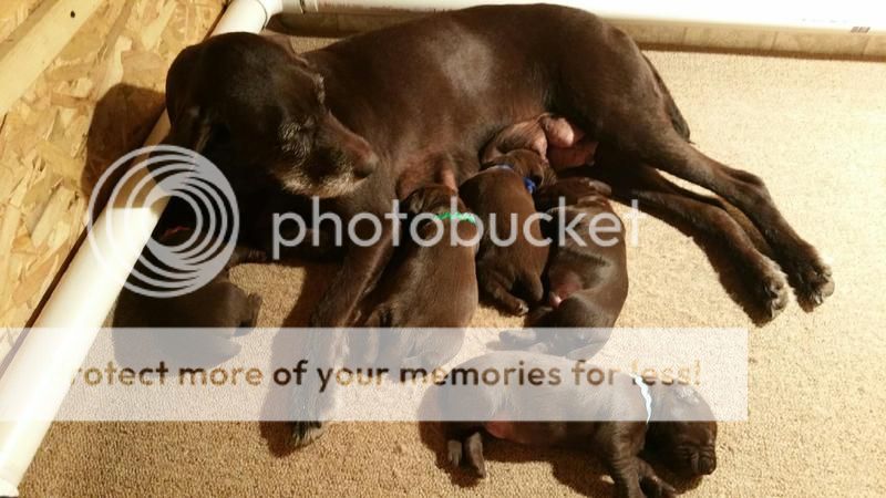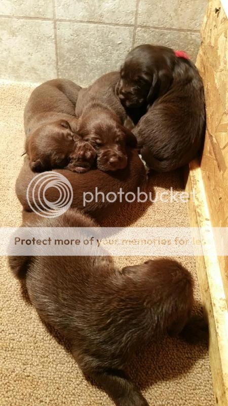 I'll probably keep this thread running posting updates and asking questions as I try my hand for the first time with a hunting dog. As I've posted previously, the wife agreed to a pudelpointer. The pups were born last week. 5 in the litter and all males. Yesterday they had their dew claws removed and tails docked. Not sure which one we'll be bringing home around Christmas, but one of these little guys will be coming to Indiana!