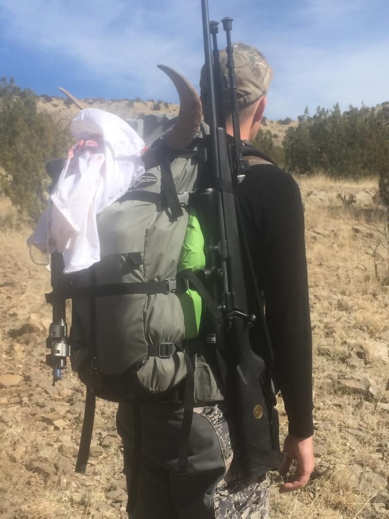 Although my buddy was with me, I wanted to pack out the sheep on my own. I just bought a Stone Glacier sky 5100 from FatRack here on Hunt Talk and wanted to give it a try. Wow, what a great pack. I wasn't impressed with the gun carrier thing, but everything else worked great. With the sheep, gun, and all my gear my pack weighed 67lbs. I hauled a 69lb pack on a coues deer hunt earlier in the year and this load was much more manageable with the stone glacier. Straight line distance was 2.1 miles to the truck.