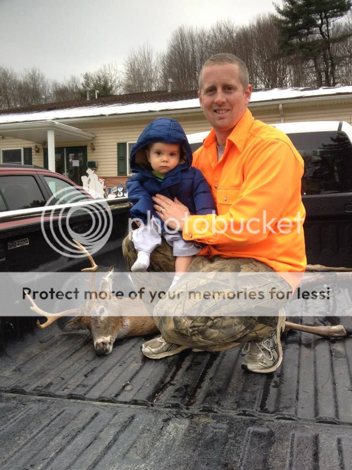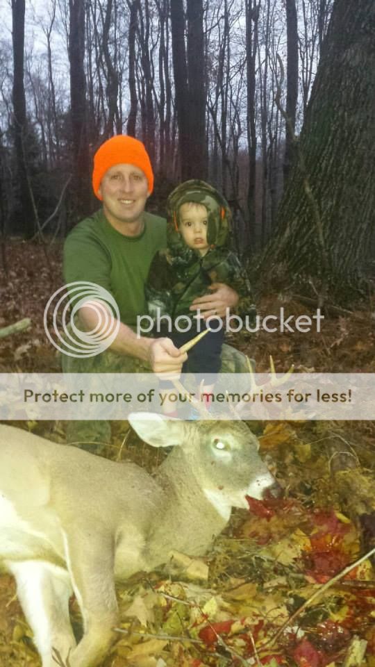 I stood up, and he paused for a couple minutes before taking a few more steps and presenting an open shot. He fell within sight, and I walked back to my house to get my wife and son. My little boy watched me field dress the buck and posed for some pictures: