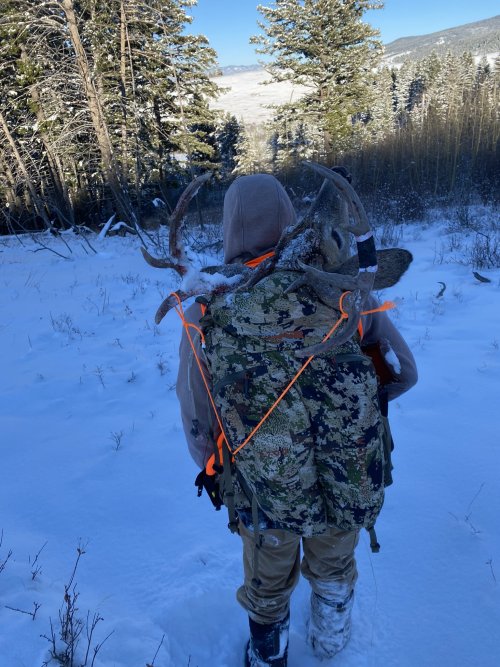 Solo pack out by me, 2014 Colorado buil, fortunately one trip mostly downhill about a mile+ with the cart on decent road bed. But took 6 trips with backpack about 1/2 mile to ferry meat to where I could load up the cart. Despite not having a great scoring rack this was the 2nd largest bodied bull I've shot.