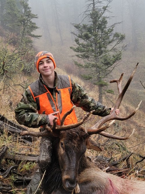 My nephew with the last load of his 2018 Colorado elk, tough uphill pack out.
