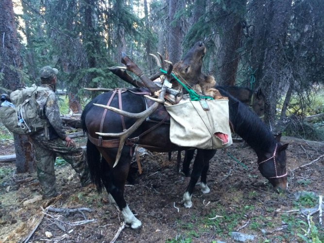 Elk, owe a huge thanks to @Oak for giving me the name of a packer as I drove in to the unit. Back when snagging incredible, high pref points reissue tags, the afternoon before season opener in Colo was a thing. This bull was 3 miles down down and down in a hole I sure did not want to carry back up on my back. @Dinkshooter was there and ready to help pack out so I guess he also benefited from these pack horses.