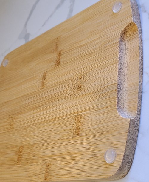 Laser engraved bamboo cutting boards with juice groove and silicone feet. Last date in order to arrive before Christmas: December 10th.