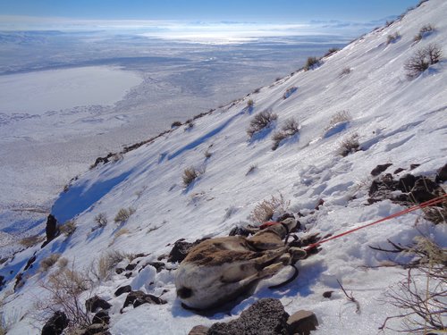 Eagles are one of the main predators of young sheep in some areas. The sheep will hug up against cliff faces and go in caves to keep the eagles from being able to get their talons into them. It is an equally effective technique to keep us from getting a good net on them from the helicopter. When this happens, we put one of us on the ground to scare them out into better terrain. Sometimes this gives the guy on the ground the chance to get their hands on one and try to wrestle it to the ground. Doesn't work very often, but if you get in quick and the terrain is in your favor, it can be done. I thought this ram was going to head butt me over the cliff behind me.