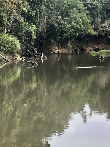 The sandflies and mosquitoes chased me off the beach - they were very “friendly”. Spot 2 was an inland fresh water stream. Now one of the myths or misunderstandings is that our saltwater or estuarine crocodiles only live in saltwater - WRONG. The real big ones live in the upper fresh reaches and eat kangaroos, pigs, cattle and the occasional tourist. Spot 2 is semi jungle and a bit of a slog to the good holes. I wandered out of the bush to see Mr Croc lounging on a sandbank. Couldn’t get the phone out quick enough. I sat quietly, well back from the water and it eventually came back up. Still wasn’t quick enough to get a pic of this 9 footer Just the ripples as it went back down.