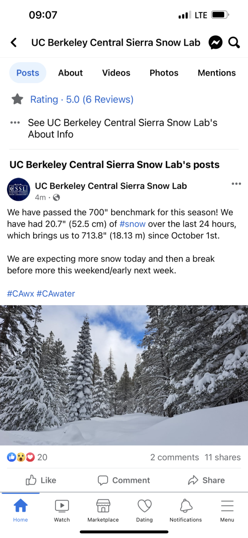 It’s been snowing here on and off all afternoon (5100ft) north of Reno. The mountains have been getting it all day. If we don’t break the record it’s going to be very close.