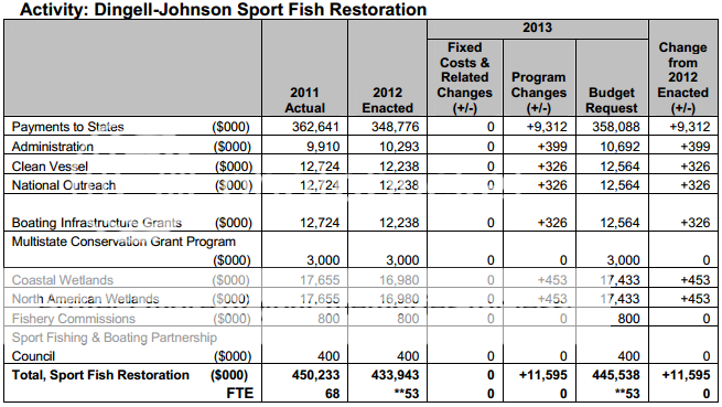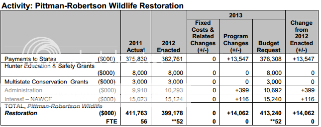 The vast majority of the $861M goes to the states. My question is can I see those amount in the Department's "proposed budget" of roughly $1.5B? If so, where? I'm want to be able to concisely explain how much R-P and D-J dollars make up the FWS budget....or do they not necessarily work in their budget proposal but are a supplemental item (fricken Government and Non-Profit Accounting rules are the reason I don't have a CPA license right now).