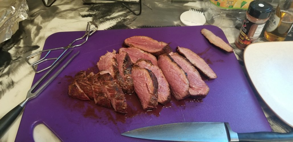 Adding a rotisserie to my smoker really made a difference in how much juice the meats retain..I serve it on a toasted bun with grilled onions