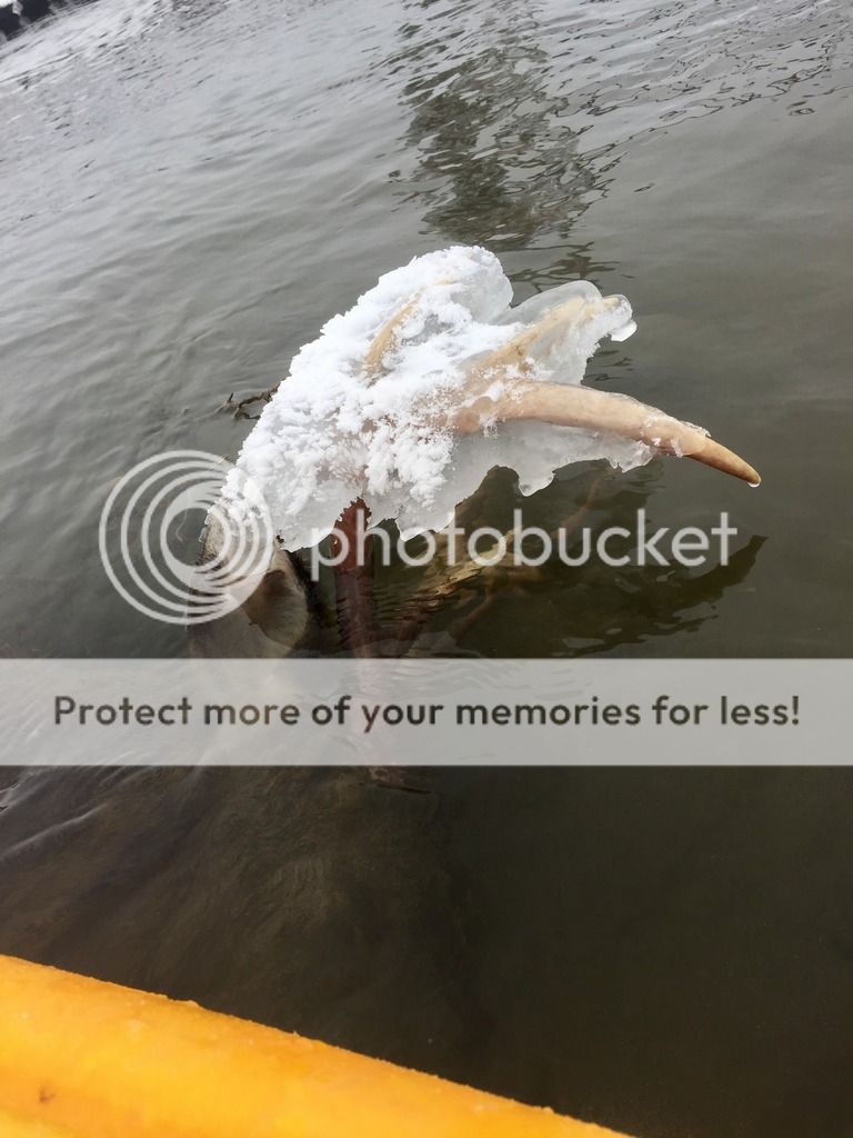 assumed he would be. I had a feeling he eventually made it to the river before he died. It turned out heading downstream was the right decision. While sitting on the river bank glassing I noticed something that looked a little off just a few inches above the water.