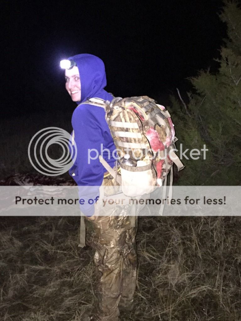 Her with a load that night while she was still running on adrenaline. I was amazed I got her to walk out in the dark after we found lion tracks in the same drainage as us.