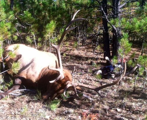 Ya we did have a good time, we just tried to stay away from the noise of the fencing work being done. A few planes and a CAT making some noise could never stop me from having a good time with my dad and father-in-law. I ended up with my nicest bull to date, the other bull was a 5 point and Dad ended up using his tag on a calf that had broken its leg in the fence.