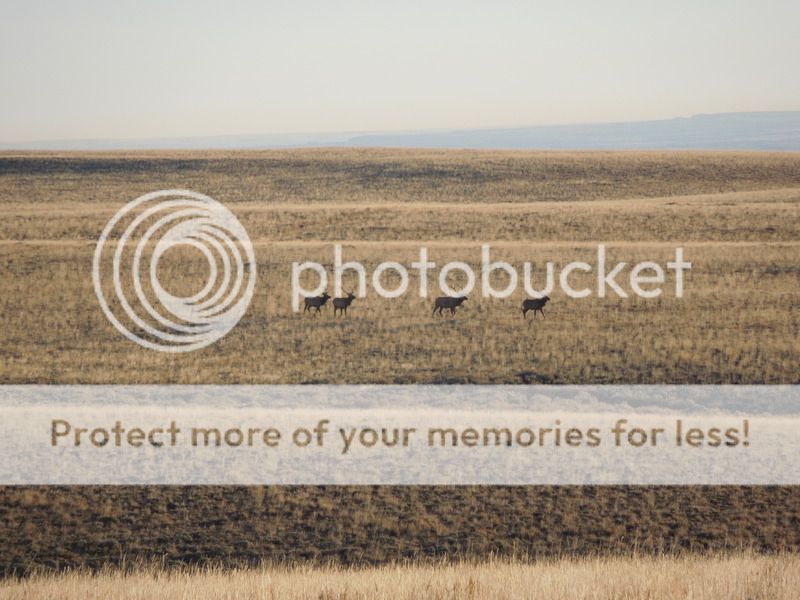 First night of scouting we didn't find any elk but saw sage grouse, coyotes, pronghorns, a couple of good mule deer bucks and piles upon loads of feral horses. Next morning we were up and at it well before daybreak. Took a bit of looking and we located a couple herds of elk. Lots of bulls, but only one that really got my dander up. BOY not so much as he was way goofy on one side.