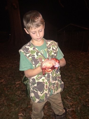 While cleaning and fixing up my grandma's house I have gotten some help from a friend's son. He's 8 so some extra work is good for him, and he enjoys it. For me it frees me to work on other things at the house instead of the little tedious things I've been procrastinating. He spent a day working a couple months ago. I paid him for his time and took him fishing that evening which he enjoyed. His dad is an avid hunter, but spends most of his time away from home working on the road. So Payton loves the idea of hunting, but rarely gets the opportunity to tag along.